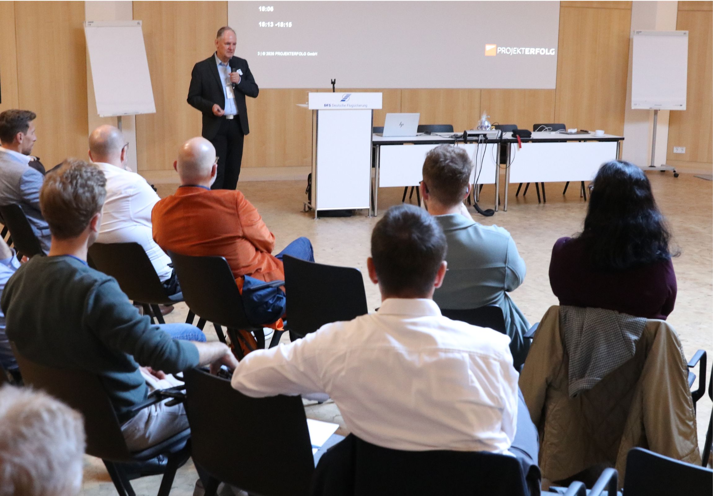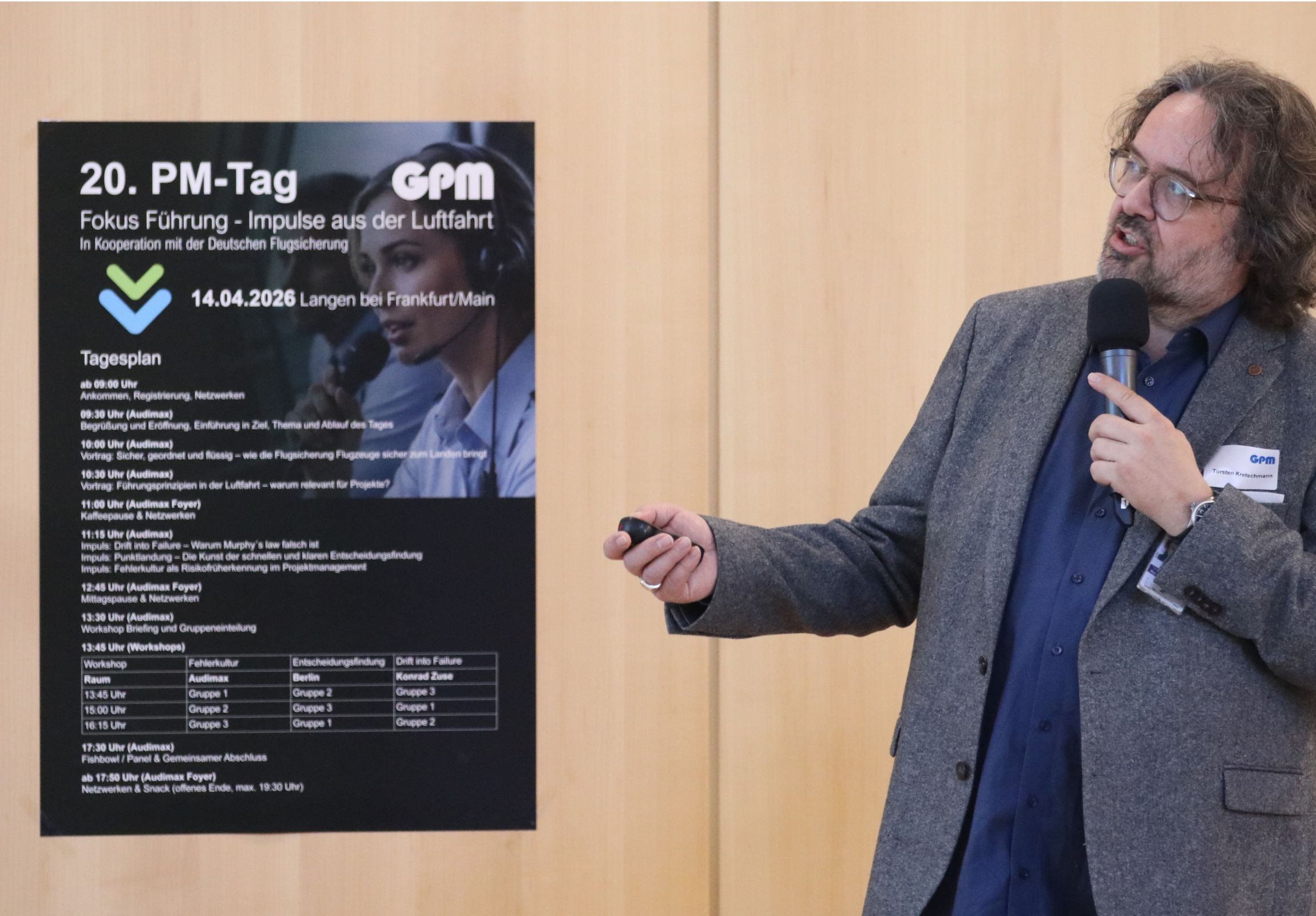 Die Tagung fand am 14. April 2026 auf dem Campus der Deutschen Flugsicherung (DFS) in Langen statt und widmete sich unter dem Titel „Fokus Führung – Impulse aus der Luftfahrt“ der Frage, wie Projekte unter Unsicherheit verlässlich gesteuert werden können. Im Zentrum standen dabei nicht klassische Methoden, sondern konkrete Führungsprinzipien und Routinen aus sicherheitskritischen Systemen. Die Veranstaltung bildete zugleich den Auftakt zur GPM Sommertour. Mit diesem Format bringt die GPM Deutsche Gesellschaft für Projektmanagement e.V. ihre Themen gezielt in die Regionen, fördert den Dialog mit Mitgliedern und Praxispartnern und macht sichtbar, wie Projektmanagement in unterschiedlichen Kontexten gelebt wird. Persönliche Begegnungen und der Austausch vor Ort stehen dabei bewusst im Mittelpunkt.