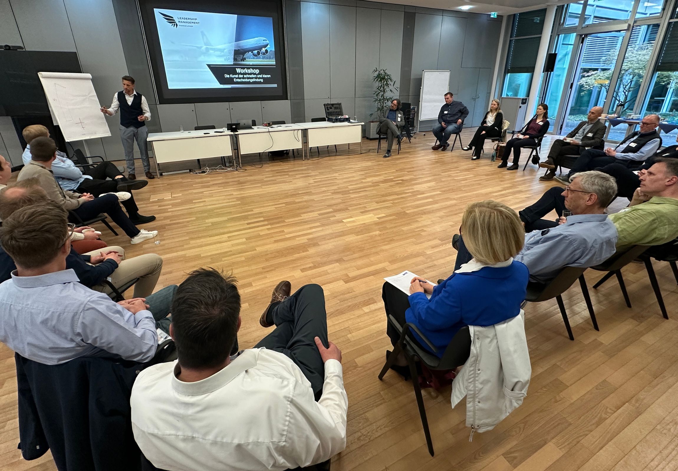Einen weiteren Schwerpunkt setzte Andreas Lücker, Verkehrspilot und Ausbilder mit langjähriger Erfahrung im Cockpit. Anhand konkreter Beispiele aus der Luftfahrt zeigte er, wie strukturierte Entscheidungsmodelle helfen, auch unter Zeitdruck belastbare Entscheidungen zu treffen. Entscheidend sei zunächst eine klare Trennung von Fakten und Annahmen, da gerade unter Stress die Tendenz bestehe, ungesicherte Einschätzungen als gegeben zu betrachten. Darauf aufbauend müssten Optionen systematisch entwickelt und bewertet werden. Ein weiterer zentraler Punkt sei das Timing: Entscheidungen sollten nicht hinausgezögert, sondern bewusst und rechtzeitig getroffen werden.