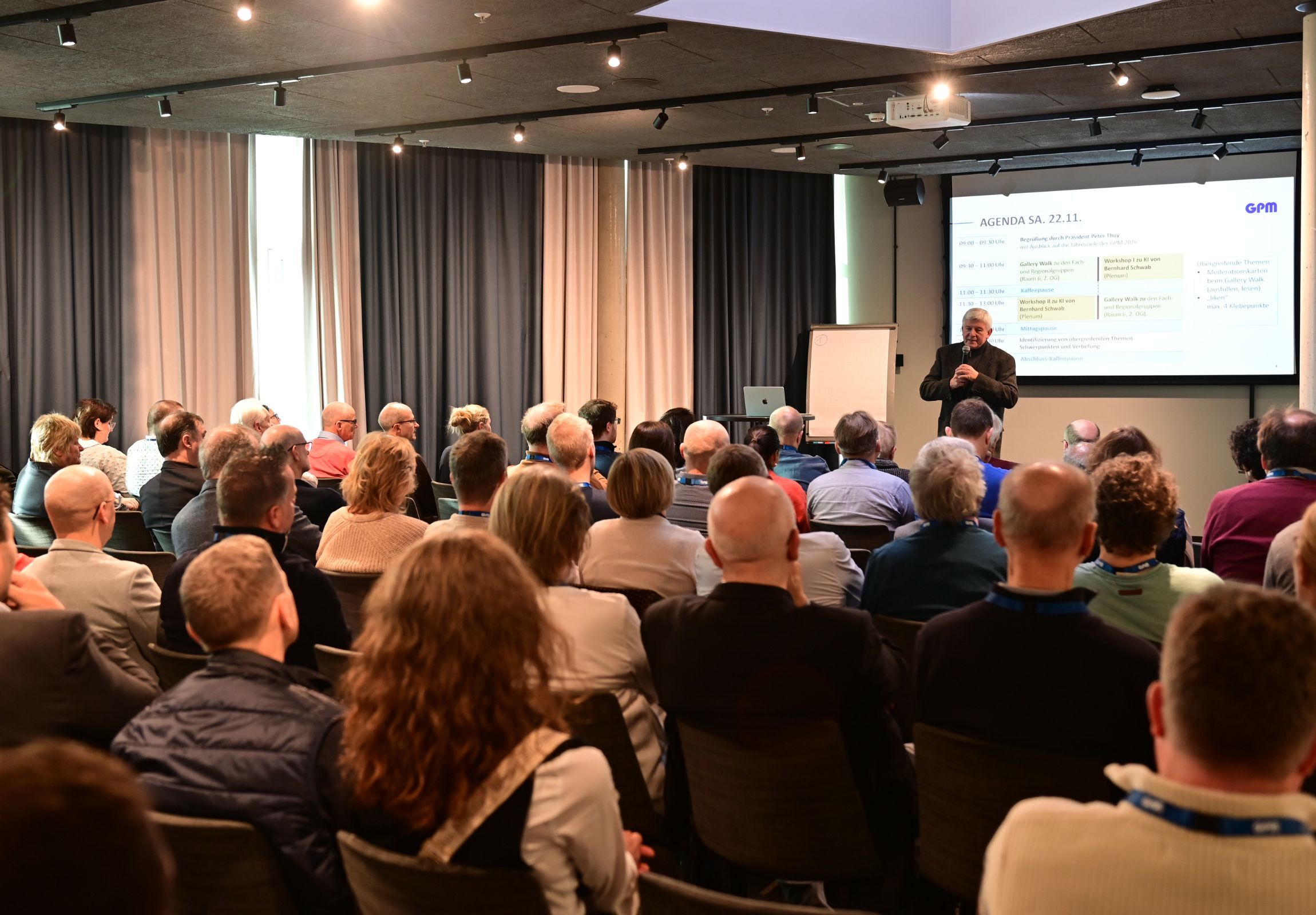 Den zweiten Tag eröffnete Prof. Dr. Peter Thuy mit einem Rückblick auf die wichtigsten Meilensteine des vergangenen Jahres. Besonders hervor hob er den 34. IPMA World Congress, der der GPM international große Aufmerksamkeit verschafft hat. Daneben verwies er auf die Vielzahl an Formaten und Aktivitäten, die bundesweit stattgefunden haben und die Breite des Ehrenamts sichtbar machen – von großen Veranstaltungen bis hin zu regionalen Initiativen und einer lebendigen Sommertour.