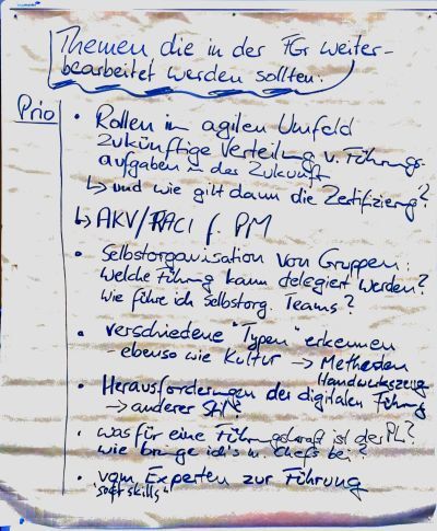 Auf Initiative von Roswitha Müller-Ettrich trafen sich im März dieses Jahres sechs GPM Mitglieder, die Interesse daran und Lust dazu hatten, die etwas „verstaubte“ Fachgruppe „Führen von Projekten“ neu zu beleben. Um dies wirkungsvoll anzustossen, kamen sie auf die Idee, ein BarCamp zu initiieren – und zwar so, dass nicht nur das Programm von allen TeilnehmerInnen („Teilgebern“ statt Teilnehmern) gemacht wird, sondern dass auch Ideen und Vorschläge eingebracht werden können, die die Fachgruppe zukünftig bearbeiten soll.